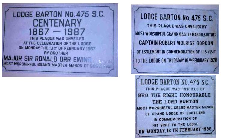 | Some of the marble plaques put on the wall outside the Temple to commemorate milestones in the history of the Lodge. |