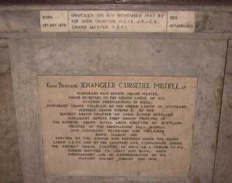 On 23rd July 1904, Bro. H. E. The Rt. Hon. Charles Wallace Alexander Napier Cochrane-Baillie, Lord Lamington, Governor of Bombay was elected as the Grand Master of All Scottish Freemasonry in India and was installed on 1st December 1904 by Bro. R. W. L. Dunlop, Grand Master Depute. After his installation, the Grand Master, Bro. Lord Lamington unveiled the marble bust of Bro. The Hon'ble Khan Bahadur Darasha Ruttonjee Chichgur, Past Grand Master Depute, Honorary Secretary of the Joint Hall Committee, on the first landing main staircase leading to the Sandhurst Temple, as a tribute by the Freemasons of Bombay in recognition of the tremendous services rendered by him in ensuring the successful completion of the new Freemasons' Hall and his valuable services to the Craft for a quarter of a century.