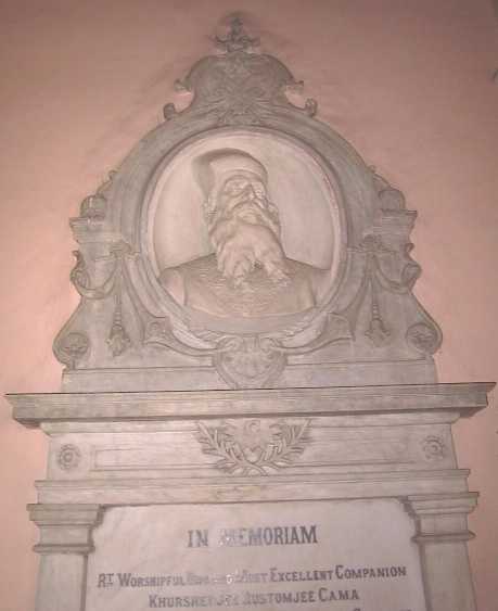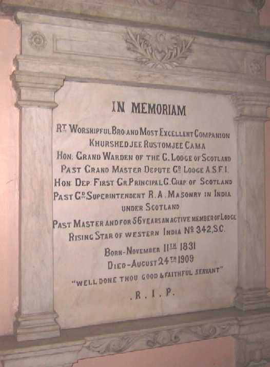 The marble wall plaque in Freemasons Hall of Bro K R Cama.